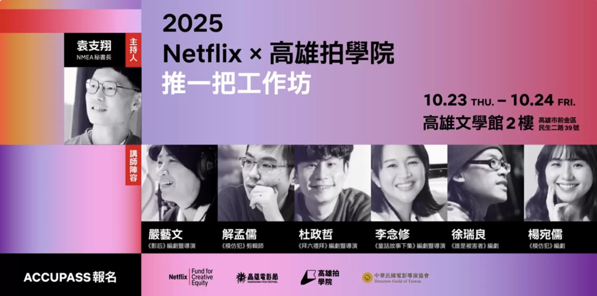 TTXC 2025高雄電影節於10月10日(五)至10月26日(日),在高雄市電影館、內惟藝術中心、高雄市立圖書館總館、VR體感劇院、駁二P3倉庫、高雄市立歷史博物館登場。影展資訊鎖定高雄電影節官方網站(www.kff.tw)、Instagram與Facebook粉絲專頁。