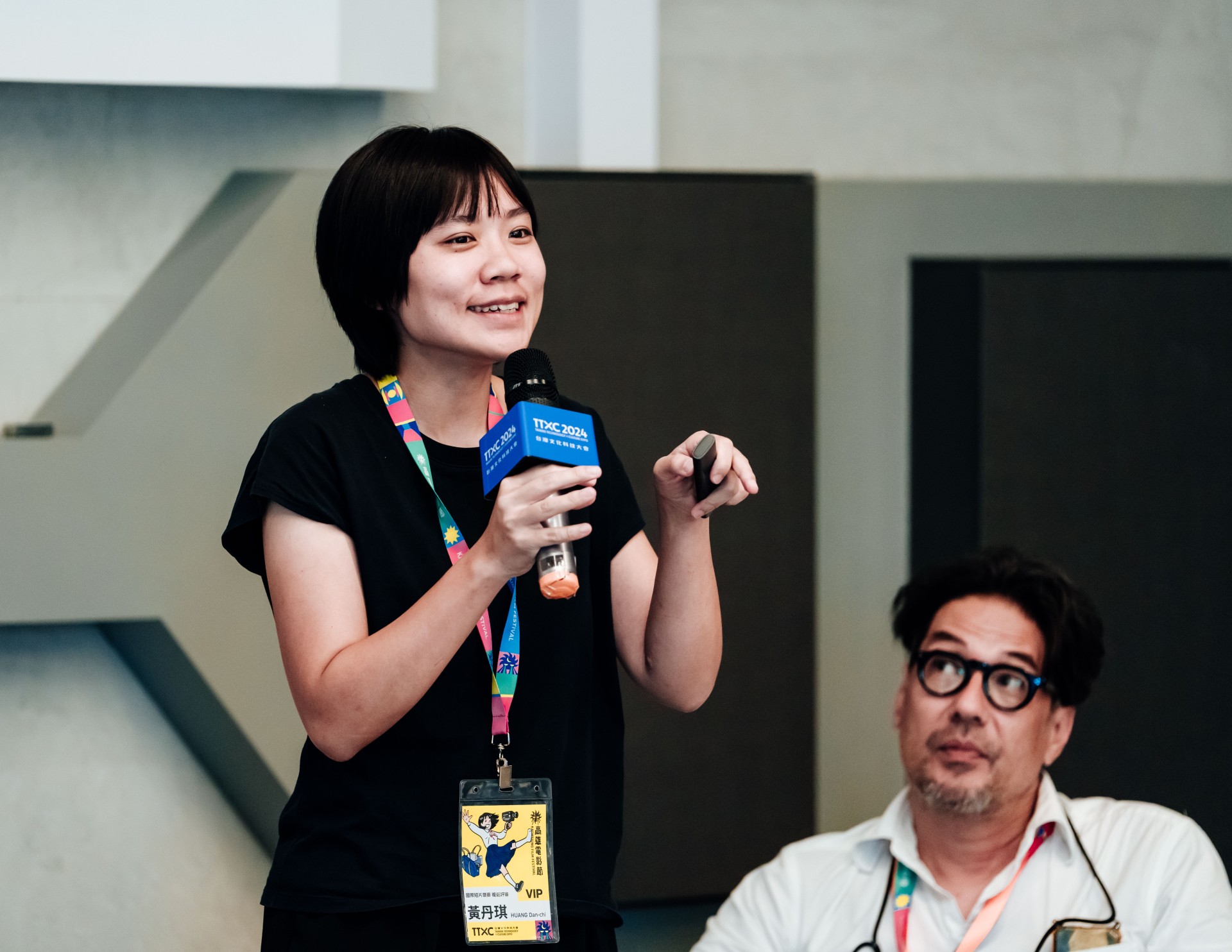 黃丹琪導演補充,故事中有旁白與對話,團隊將聲音綁定在角色上,透過這樣的處理有不同角度的切換。音樂由王希文製作,打鬥的畫面也用二胡和琵玩做現場演出,歡迎大家有興趣可以去看作品。