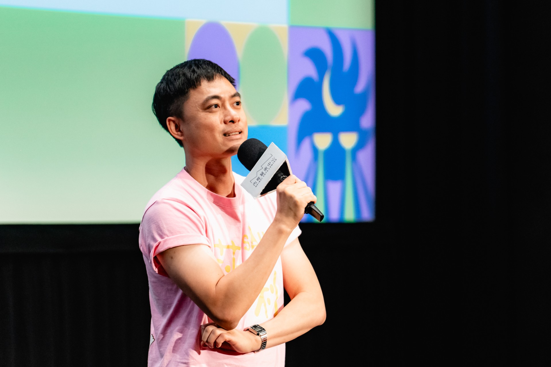練建宏導演分享了他親身遭遇「愛情詐騙」的經歷:在WhatsApp上,他遇到一名自稱在阿拉伯海工作的人,練導於是以「麗麗」的身份進行田野調查。他表示「對方進展太慢,我便問他是否願意和我結婚,最終他決定來台灣見面,並向我索要金錢。」這段往事引發現場爆笑。當被問及為何想將《莎莉》製作成「口述影像」版時,他表示希望透過電影認識更多人,傳遞更多善意,並強調製作團隊一開始就為視障朋友留了預算,願意盡力付出。